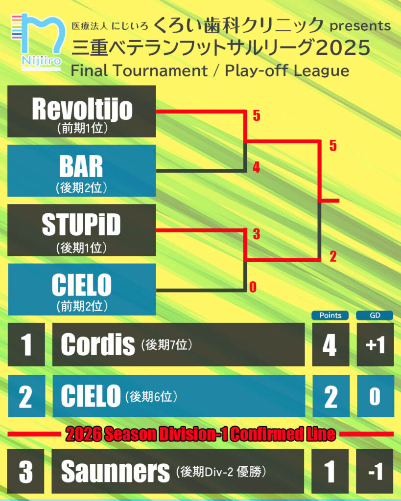 | 11/16(日) | Division-1 | GK:金崎 祥太郎(BONDS) FP:津田 真吾(Revoltijo) FP:三谷 達也(BAR) FP:橋本 憲(BAR) FP:大迫 慎平(STUPiD) |